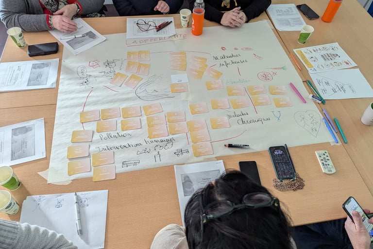 En première partie, découvrez les liens causes-conséquences entre notre santé et nos environnements grâce à un jeu de cartes interactif et collaboratif.